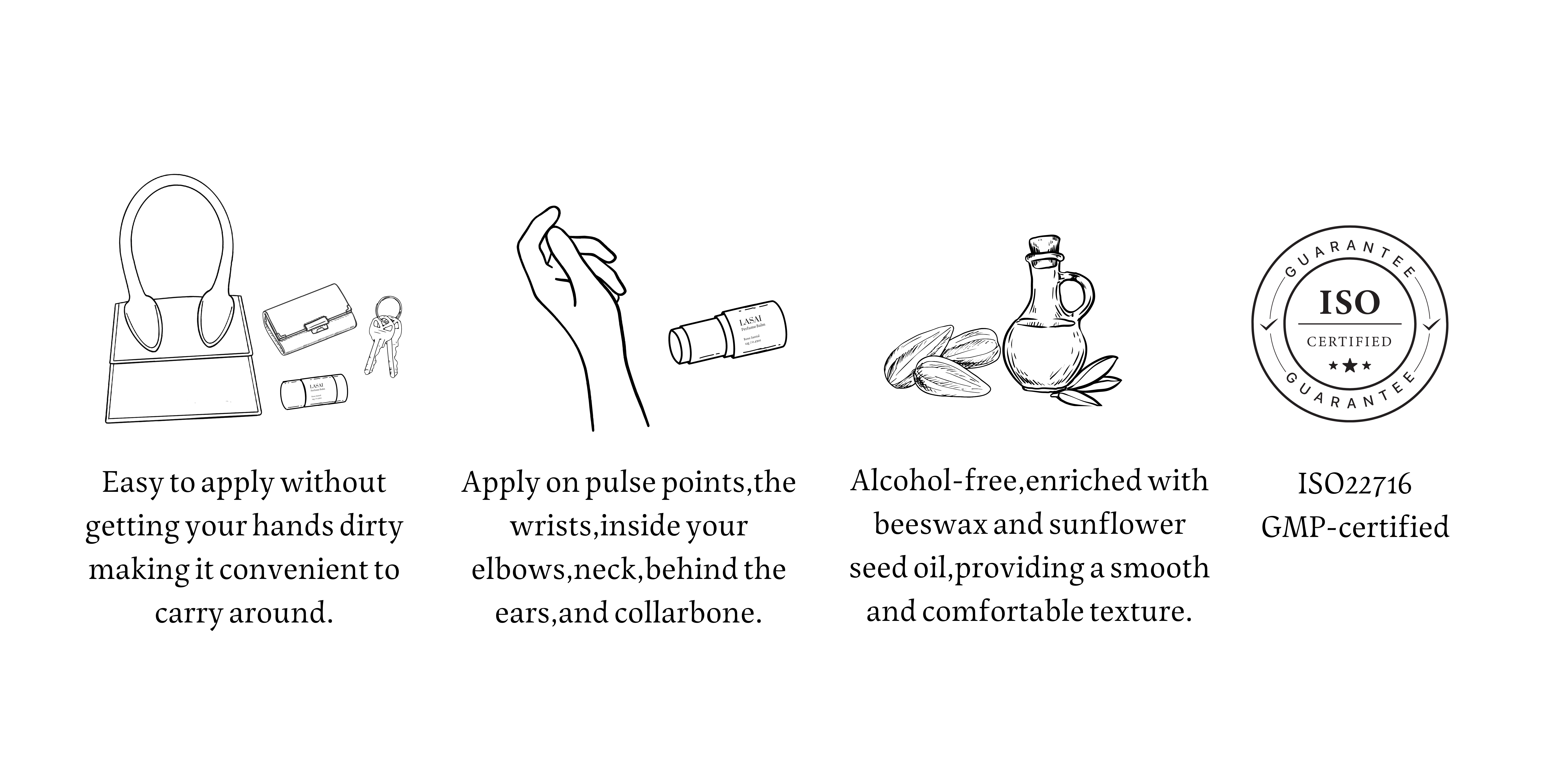 This is a solid perfume that is easy to apply without getting your hands dirty, making it convenient to carry around. You can top up your fragrance anytime when you're out. It blends beautifully with the skin, giving off a natural body scent.