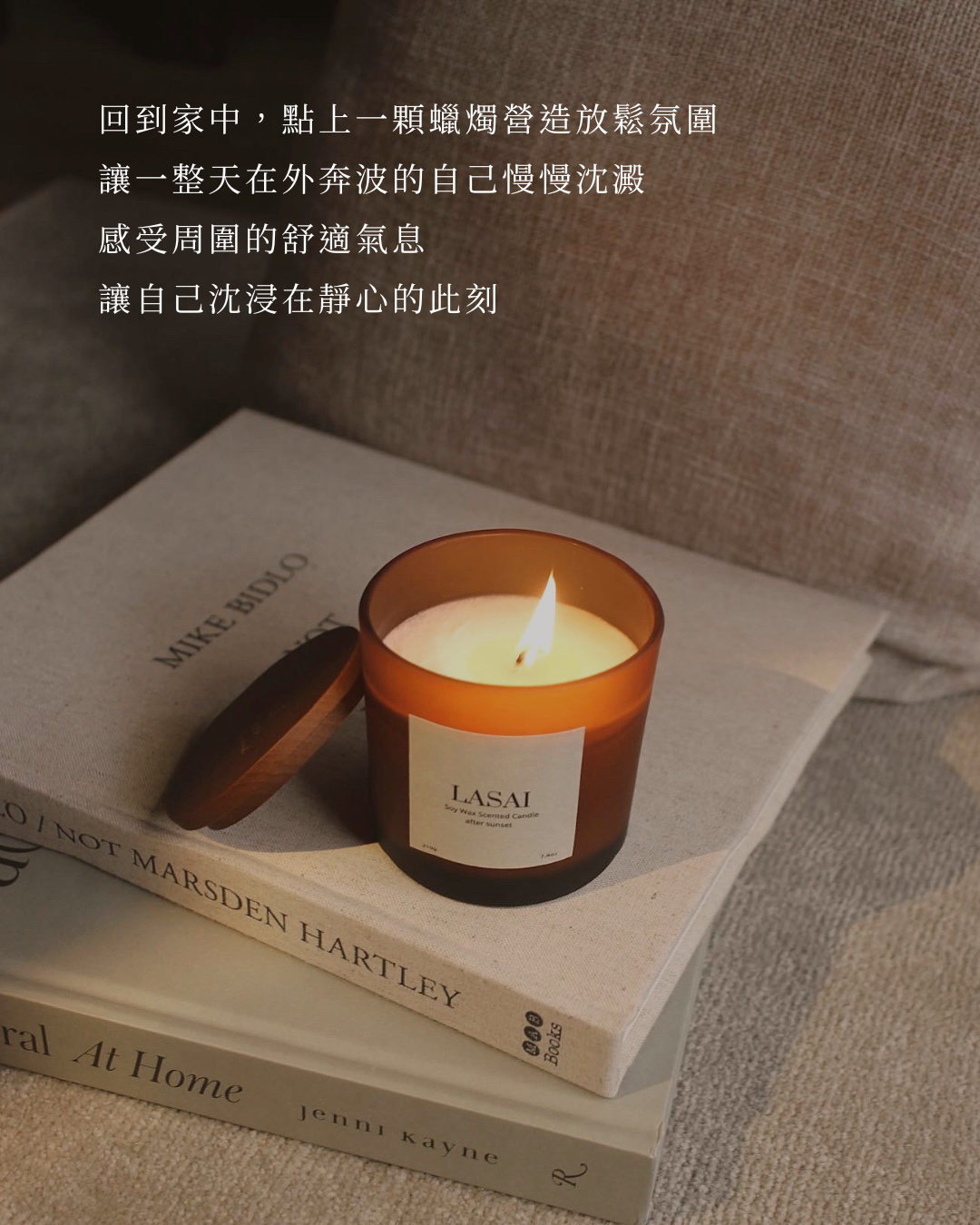 回到家中,點上一顆蠟燭,營造舒緩放鬆的氛圍,讓一整天在外奔波的自己慢慢沈澱。喜歡在睡前享受木質的溫暖氣息,讓心找到安定的歸宿。